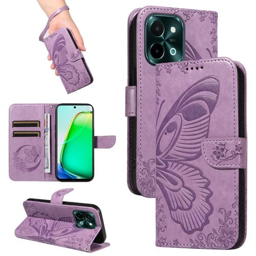 Para Vivo Y28 4G Swallowtail Butterfly Funda de Cuero para Teléfono En Relieve (Púrpura)
