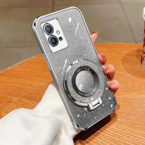Para Vivo Y33S 5G / Y75 Estuche para Teléfono de TPU con Soporte Redondo y Brillo Degradado Plateado (Plateado)