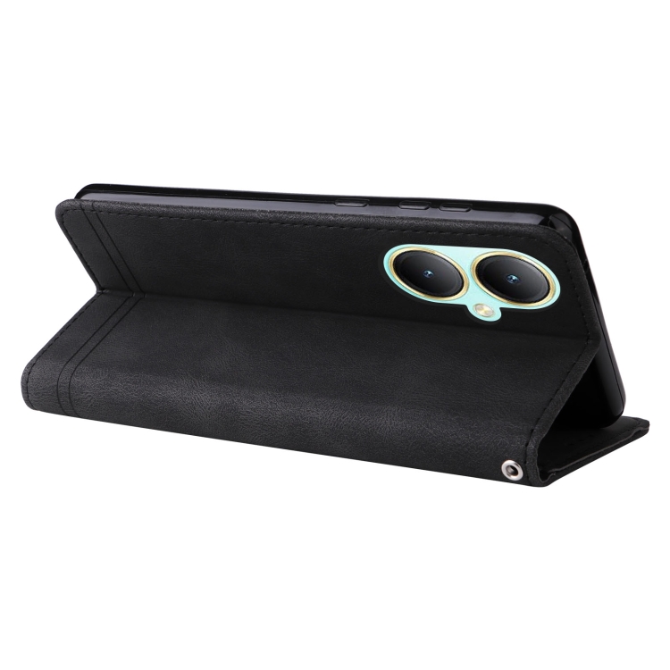 Para Vivo Y35 + Skin Feel Life Tree Metal Button Funda de Cuero para Teléfono (Negro)