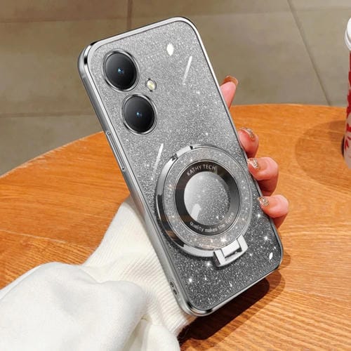 Para Vivo Y35 + / Y27 4G Estuche para Teléfono de TPU con Soporte Redondo y Brillo Degradado Plateado (Plateado)