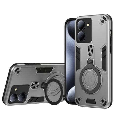 Para Vivo Y36 5G Anillo de Metal Soporte Giratorio de 360 Grados Caja Híbrida para Teléfono de TPU para PC (Gris Plateado)