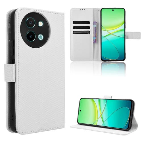 Para Vivo Y38 5G / Y200I 5G Funda de Cuero con Textura de Diamante (Blanco)