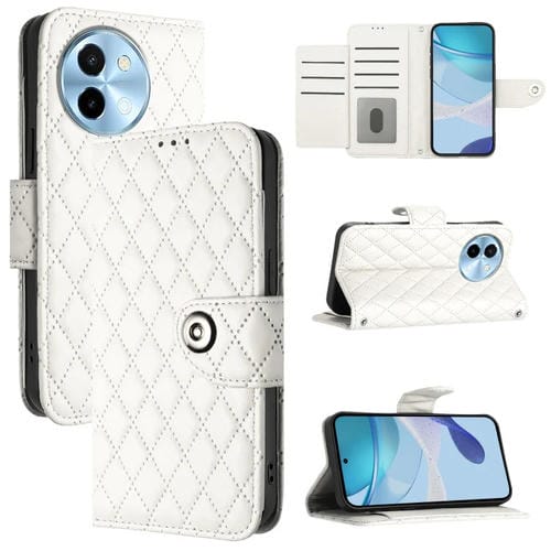 Para Vivo Y38 / Y200I / T3X Funda para Teléfono con Tapa de Cuero con Textura Rómbica y Cordón (Blanco)