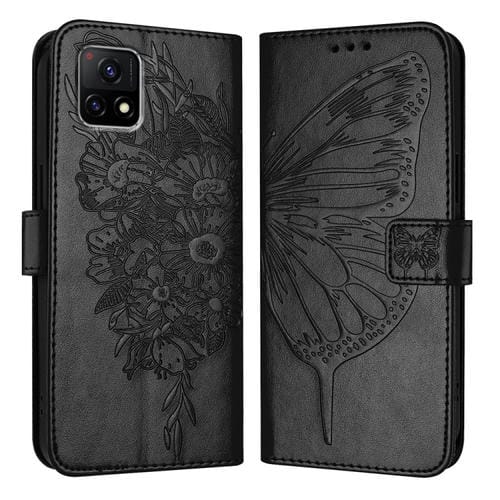 Para Vivo Y52S 5G / Iqoo U3 / Y31S 5G Funda para Teléfono de Cuero con Mariposa En Relieve (Negro)