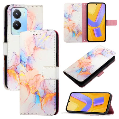 Para Vivo Y56 5G / Y16 4G / Y02S 4G Pt003 Funda de Cuero con Tapa con Patrón de Mármol (Blanco Mármol)