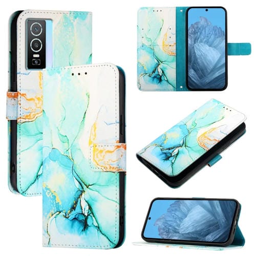 Para Vivo Y76 5G Pt003 Funda para Teléfono de Cuero con Tapa con Patrón de Mármol (Verde)