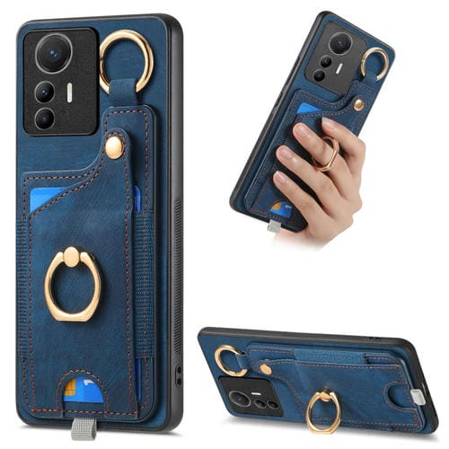 Para Xiaomi 12 Lite Funda para Teléfono con Bolsa para Tarjeta con Anillo y Sensación de Piel Retro con Lazo para Colgar (Azul)