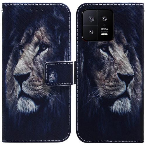 Para Xiaomi 13 5G Estuche de Teléfono de Cuero con Tapa de Dibujo Coloreado (León)