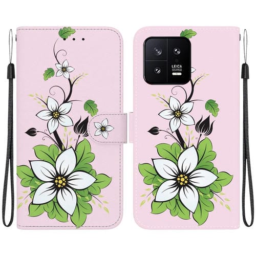 Para Xiaomi 13 5G Funda de Teléfono de Cuero con Dibujo Coloreado con Textura de Cristal (Lirio)