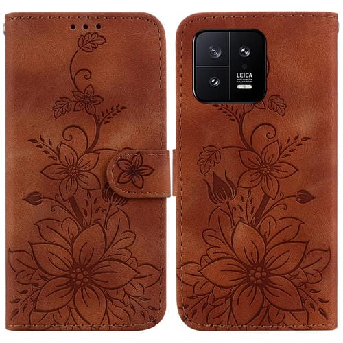 Para Xiaomi 13 5G Lily Funda de Cuero para Teléfono En Relieve (Marrón)