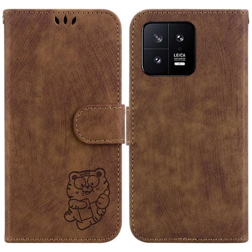 Para Xiaomi 13 5G Little Tiger Funda de Cuero En Relieve para Teléfono (Marrón)