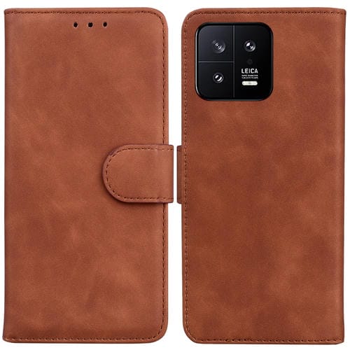 Para Xiaomi 13 5G Skin Feel Pure Color Flip Funda de Cuero para Teléfono (Marrón)