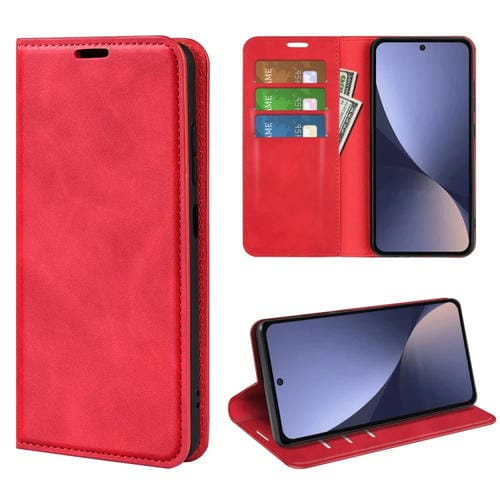 Para Xiaomi 13 Funda de Teléfono de Cuero con Succión Magnética de Piel Retro (Rojo)