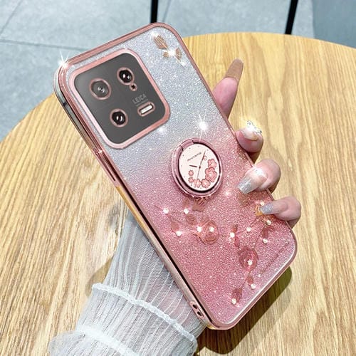 Para Xiaomi 13 Gradient Glitter Immortal Flower Ring Funda para Teléfono con Todo Incluido (Rosa)