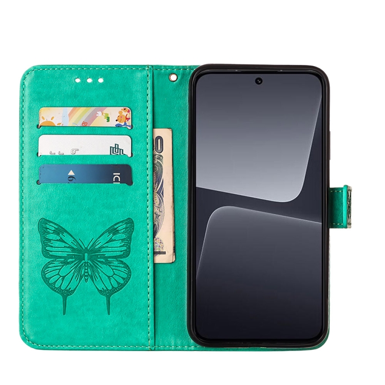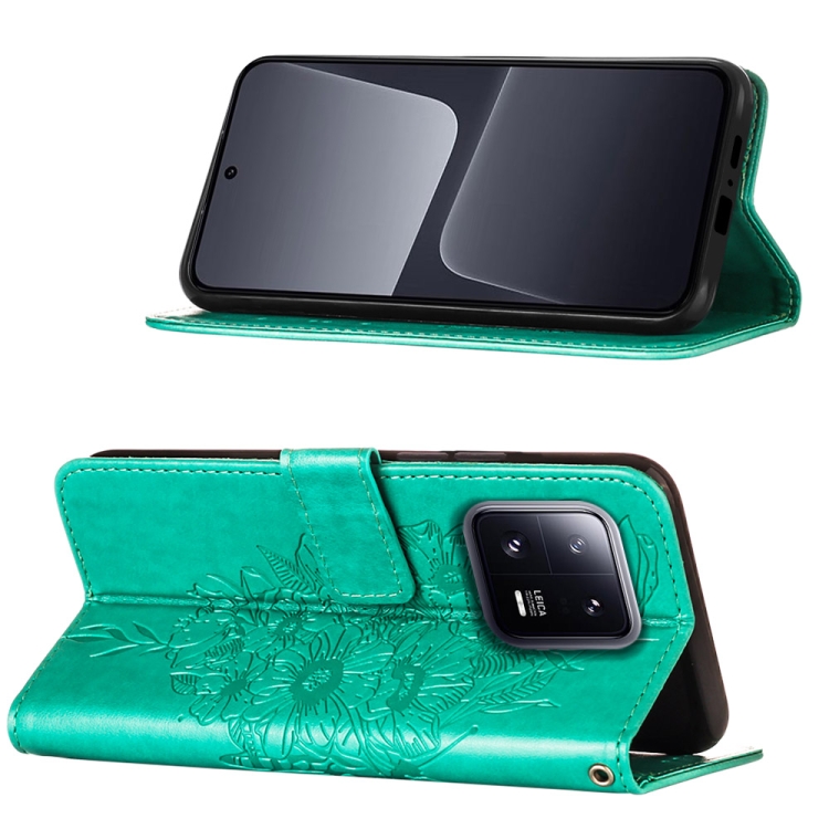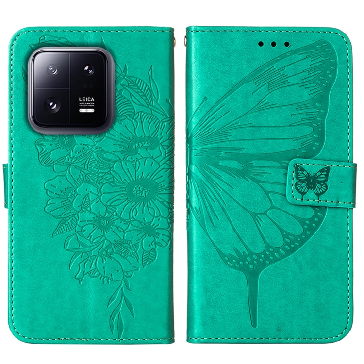 Para Xiaomi 13 Pro Estuche para Teléfono de Cuero con Mariposa En Relieve (Verde)