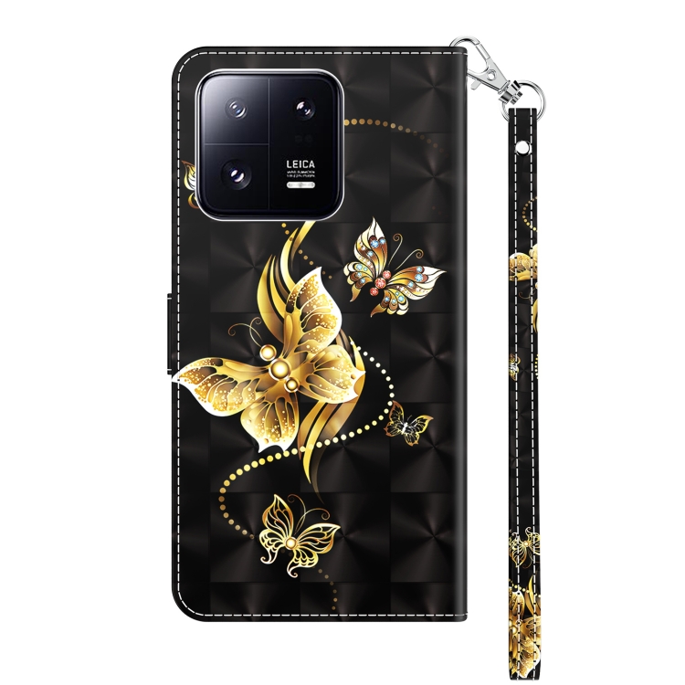 Para Xiaomi 13 Pro Estuche para Teléfono de Cuero con Patrón Pintado En 3D (Mariposa Dorada)