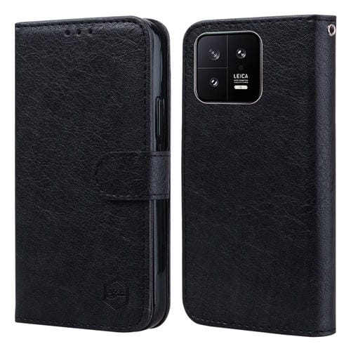 Para Xiaomi 13 Sensación de Piel Aceite Textura de Cuero Pu + TPU Funda para Teléfono (Negro)