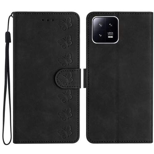 Para Xiaomi 13 Seven Butterflies Caja de Teléfono de Cuero En Relieve (Negro)