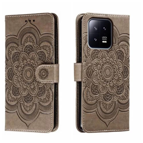 Para Xiaomi 13 Sun Mandala Patrón En Relieve Funda de Cuero para Teléfono (Gris)
