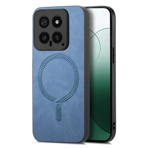 Para Xiaomi 14 Color Sólido Retro Magsafe Pu Funda Para Teléfono Con Contraportada (Azul)