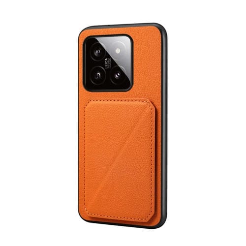 Para Xiaomi 14 D04 Funda Para Teléfono Con Soporte Para Ranura Para Tarjeta Dual Con Textura De Pantorrilla (Naranja)