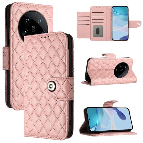 Para Xiaomi 14 Funda De Teléfono De Cuero Con Tapa Con Textura Ultra Rómbica Y Cordón (Rosa Coral)