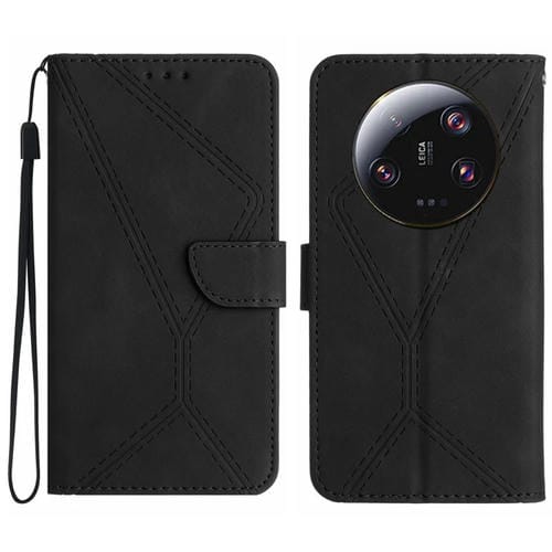 Para Xiaomi 14 Funda De Teléfono De Cuero En Relieve Con Costuras Ultra (Negro)