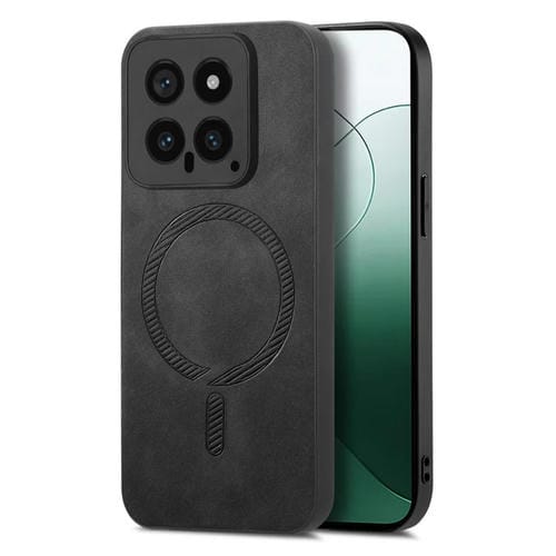 Para Xiaomi 14 Pro 5G Color Sólido Retro Magsafe Pu Funda Para Teléfono Con Contraportada (Negro)