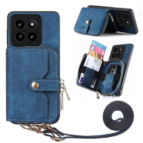 Para Xiaomi 14 Pro Crossbody Funda Para Teléfono Con Billetera Con Cremallera Multifunción (Azul)
