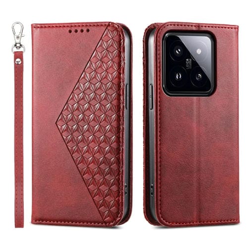Para Xiaomi 14 Pro Cubic Grid Calf Texture Funda De Cuero Magnética Para Teléfono (Rojo)