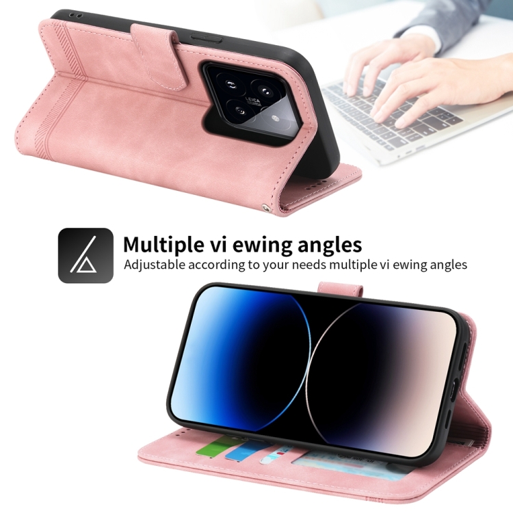 Para Xiaomi 14 Pro Dierfeng Dream Line Tpu + Funda De Cuero Para Teléfono Pu (Rosa)
