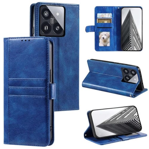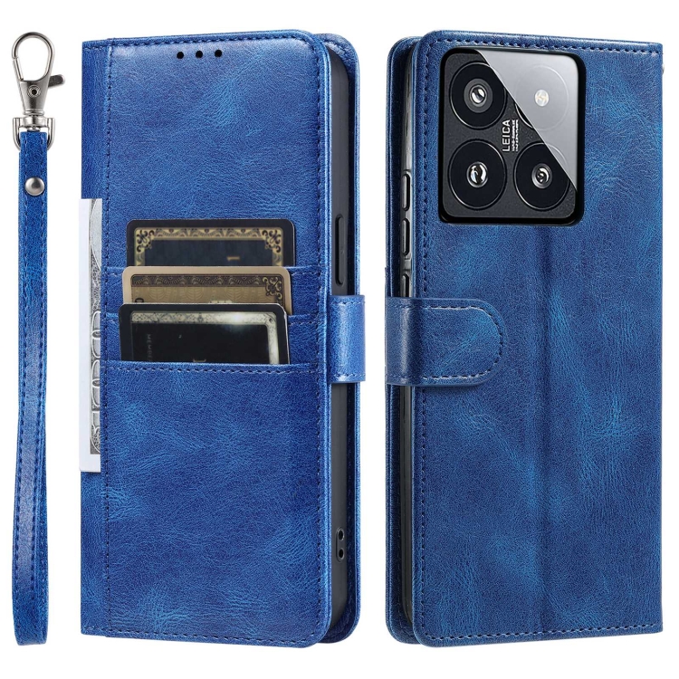 Para Xiaomi 14 Pro Funda De Teléfono De Cuero Con Billetera Simple Para 6 Tarjetas (Azul)