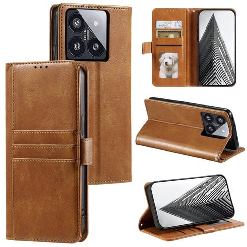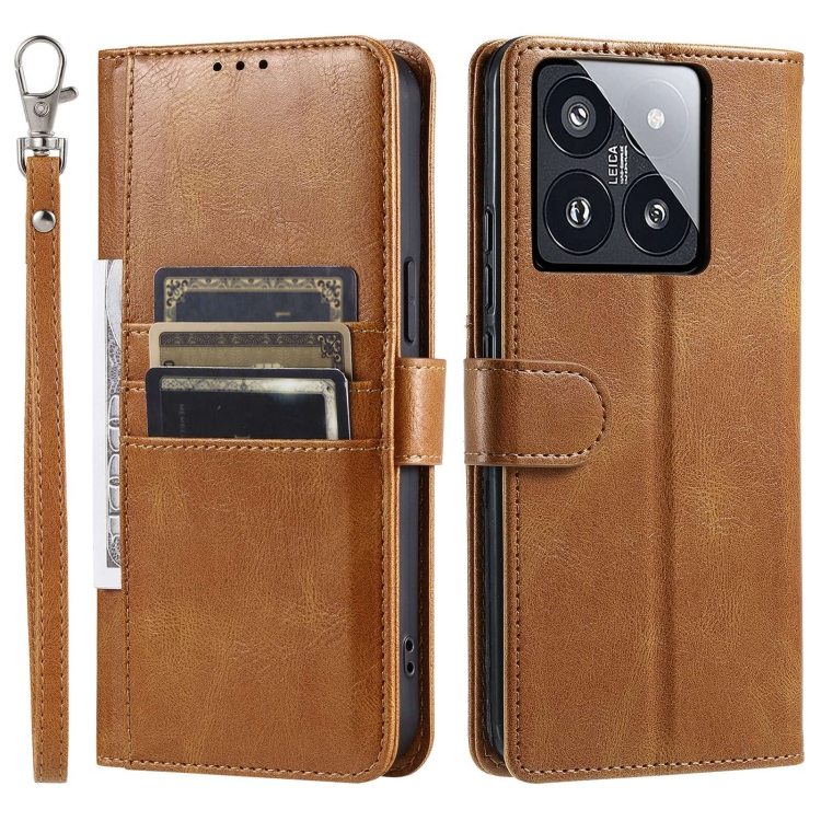 Para Xiaomi 14 Pro Funda De Teléfono De Cuero Con Billetera Simple Para 6 Tarjetas (Marrón)