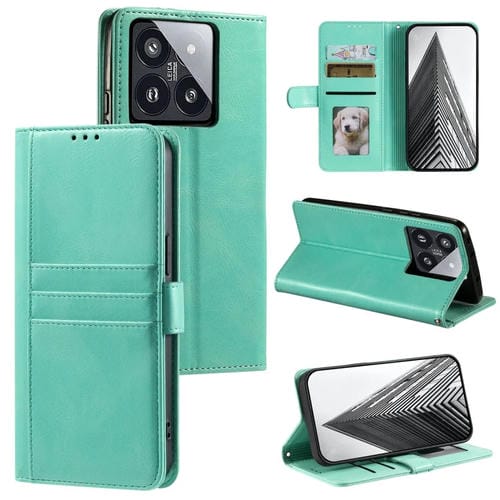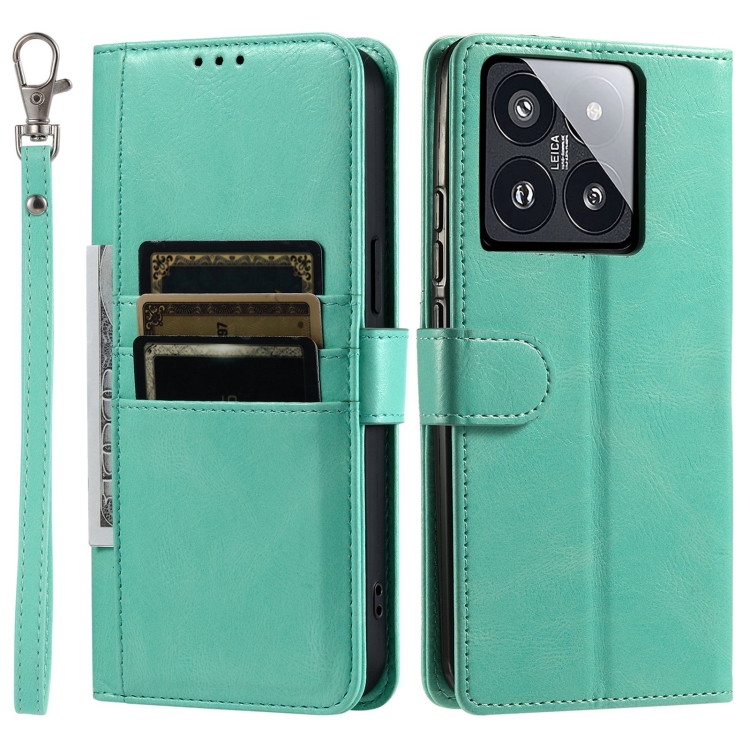 Para Xiaomi 14 Pro Funda De Teléfono De Cuero Con Billetera Simple Para 6 Tarjetas (Verde)