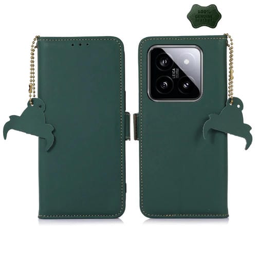 Para Xiaomi 14 Pro Funda De Teléfono De Cuero Magnético Rfid De Cuero Genuino (Verde)