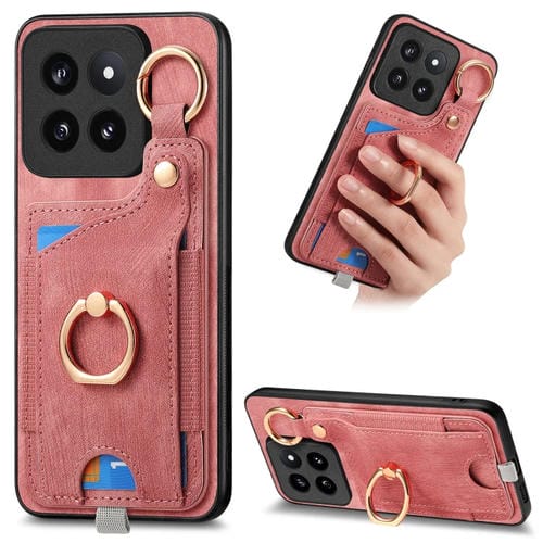 Para Xiaomi 14 Pro Funda Para Teléfono Con Bolsa Para Tarjeta Con Anillo Y Sensación De Piel Retro Con Lazo Para Colgar (Rosa)
