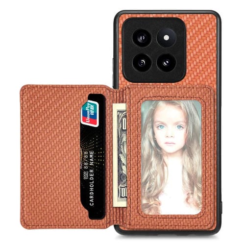 Para Xiaomi 14 Pro Funda Para Teléfono Con Bolsa Para Tarjeta Magnética De Fibra De Carbono (Marrón)