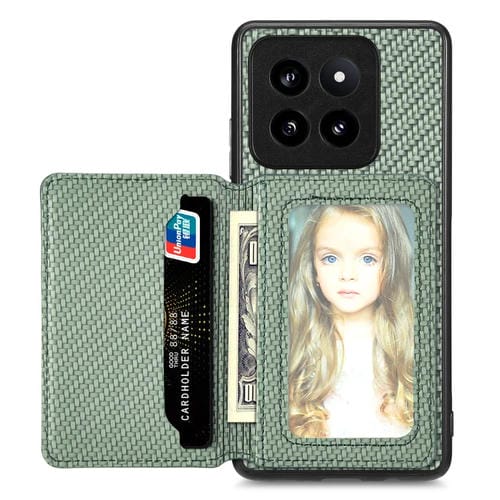 Para Xiaomi 14 Pro Funda Para Teléfono Con Bolsa Para Tarjeta Magnética De Fibra De Carbono (Verde)
