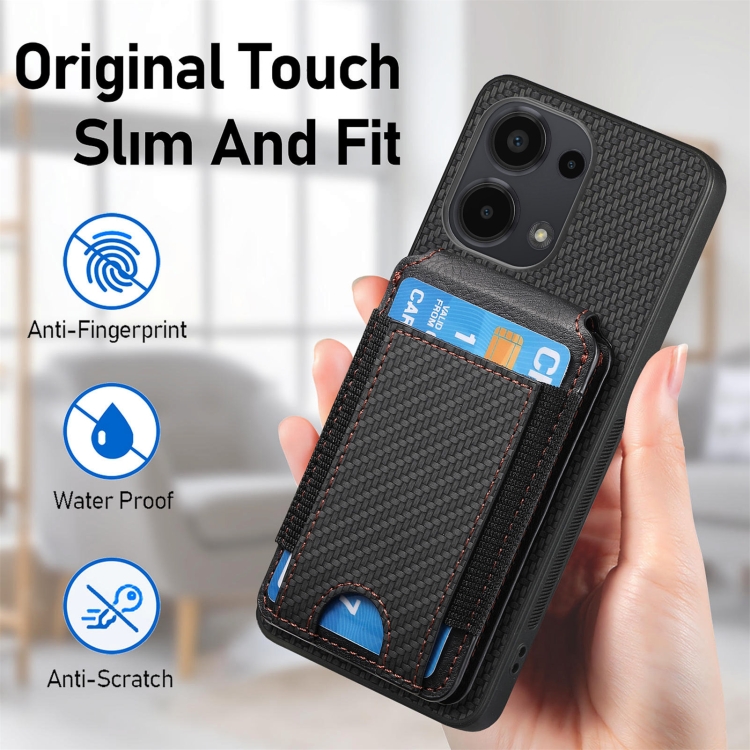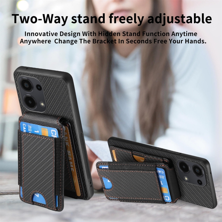 Para Xiaomi 14 Pro Funda Para Teléfono Con Soporte Y Billetera Con Tapa Vertical De Fibra De Carbono (Negro)