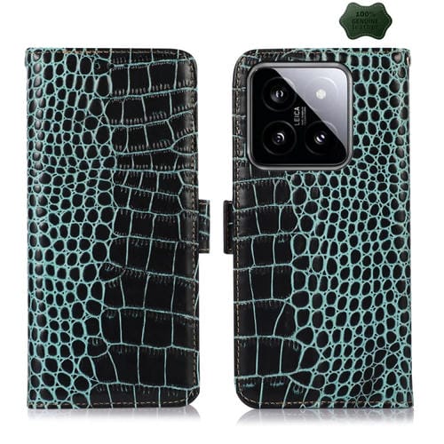 Para Xiaomi 14 Pro Funda Para Teléfono De Cuero De Vaca Con Capa Superior De Cocodrilo (Verde)