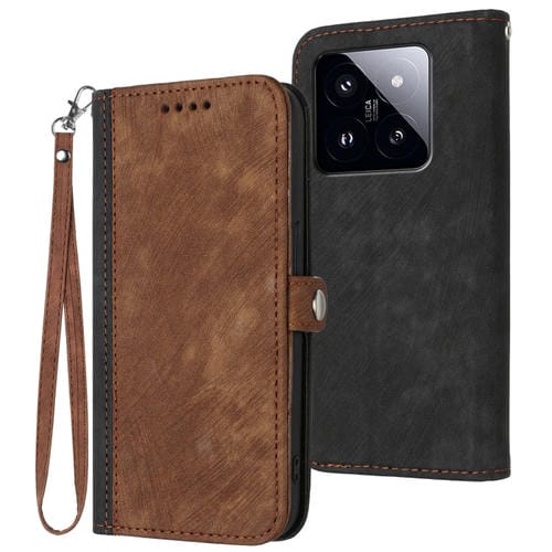 Para Xiaomi 14 Pro Hebilla Lateral Doble Pliegue Correa De Mano Funda De Cuero Para Teléfono (Marrón)