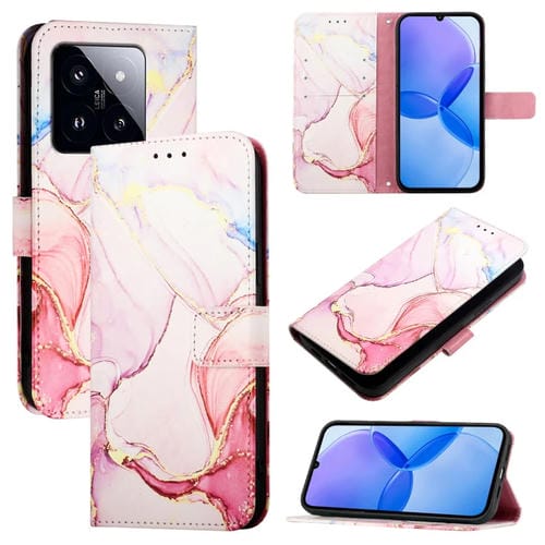 Para Xiaomi 14 Pro Pt003 Funda De Teléfono De Cuero Con Tapa Con Patrón De Mármol (Oro Rosa)