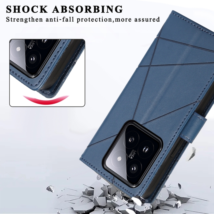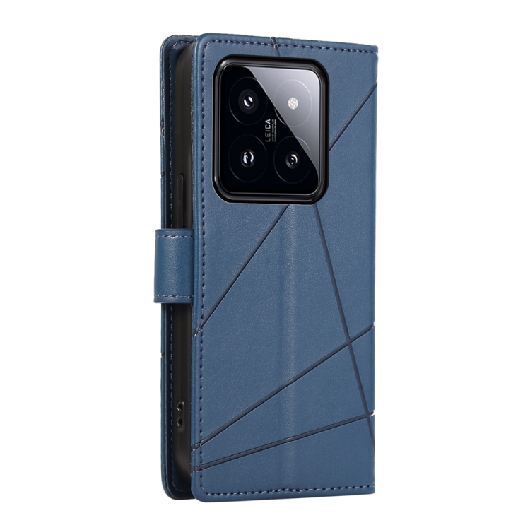 Para Xiaomi 14 Pro Pu Funda De Teléfono Con Línea En Relieve Con Textura De Cuero Genuino (Azul)