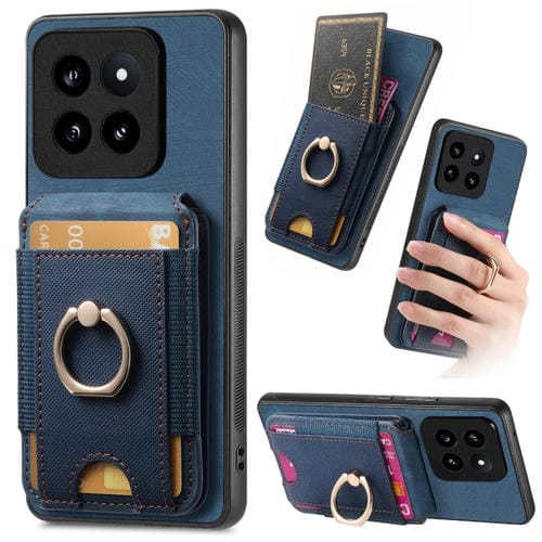 Para Xiaomi 14 Pro Retro Splitable Magnetic Stand Card Bag Funda De Cuero Para Teléfono (Azul)