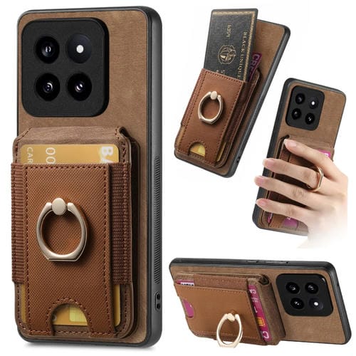 Para Xiaomi 14 Pro Retro Splitable Magnetic Stand Card Bag Funda De Cuero Para Teléfono (Marrón)