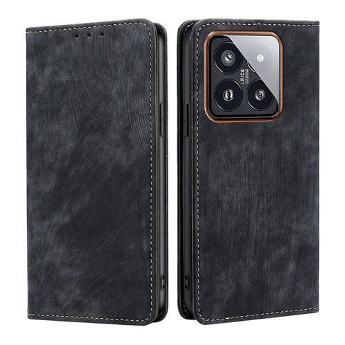 Para Xiaomi 14 Pro Rfid Cepillo Antirrobo Funda De Cuero Magnética Para Teléfono (Negro)