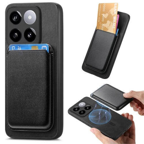 Para Xiaomi 14 Retro Magsafe Card Bag Pu Funda Para Teléfono Con Contraportada (Negro)