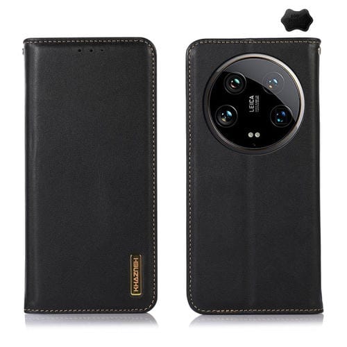 Para Xiaomi 14 Ultra Khazneh Nappa Funda Para Teléfono De Cuero De Vaca De Capa Superior (Negro)