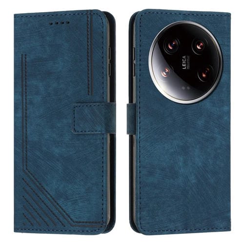 Para Xiaomi 14 Ultra Skin Feel Funda De Cuero Para Teléfono Con Patrón De Rayas Y Cordón Largo (Azul)
