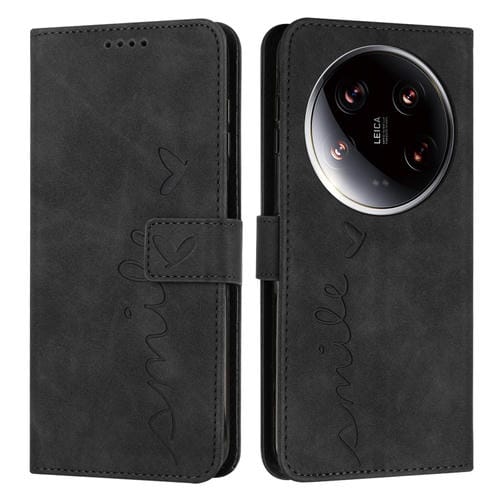 Para Xiaomi 14 Ultra Skin Feel Heart Funda Para Teléfono De Cuero En Relieve Con Cordón Largo (Negro)